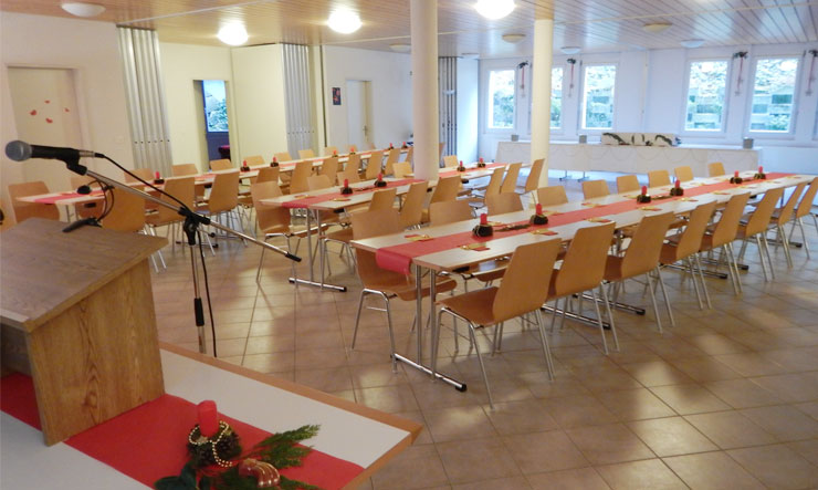 SMG im Überblick Jeden Sonntag um 9.30 Uhr Gemeinsamer Gottesdienst mehr erfahren > Wir beten für Anliegen aus aller Welt Gebetsstunde und Bibelkreis mehr erfahren > Für Kinder von 4 – 12 Jahre Sonntagsschule mehr erfahren > Einmal im Monat am Mittwoch Kindertreff mehr erfahren > Für Kinder von 5 – 12 Jahre Kinderwoche mehr erfahren > Wir singen Lieder und hören Andacht Seniorengruppe mehr erfahren > Wir unterstützen Missionsprojekte Mission mehr erfahren > Sind Sie einsam, haben Sie Sorgen? Besuchs- und Seelsorgedienst mehr erfahren > Sind Sie nicht mobil? Fahrdienst mehr erfahren > Für interne und externe Anlässe Raumvermietung mehr erfahren >